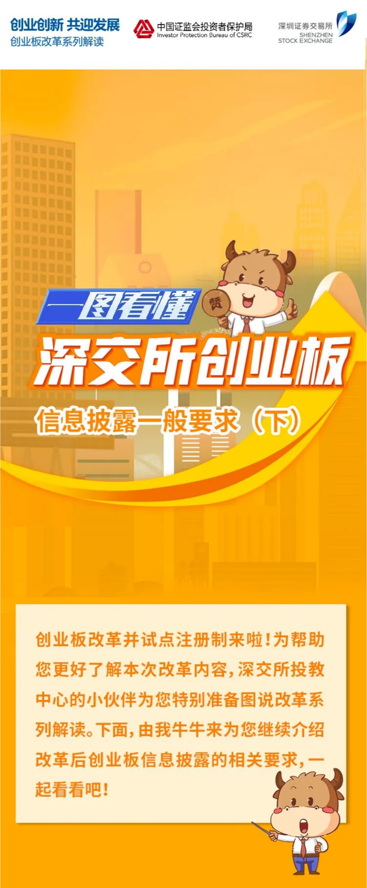 為幫助投資者加深對創業板改革并試點注冊制的認識和理解,深交所投資者教育中心特別推出圖說改革系列解讀。本篇繼續介紹改革后創業板信息披露相關要求,一起來了解一下吧!