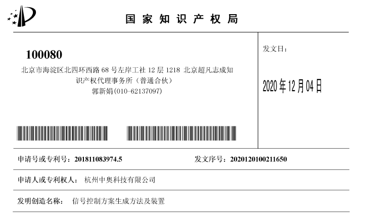 近日,杭州中奧科技有限公司獲得國(guó)家知識(shí)產(chǎn)權(quán)局頒發(fā)的《多路口信號(hào)控制方案生成方法及裝置》、《信號(hào)控制方案生成方法及裝置》和《城市區(qū)域分級(jí)劃分方法及裝置》三項(xiàng)發(fā)明專(zhuān)利授權(quán)證書(shū),這些專(zhuān)利技術(shù)為智慧城市、智慧交通提供不斷創(chuàng)新的技術(shù)應(yīng)用支撐。